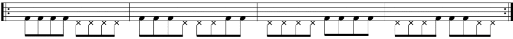 1拍の中に入る16分音符の全パターンを足で演奏します。