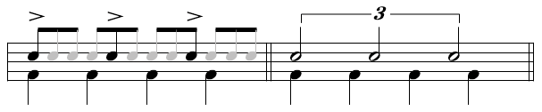 ex1) 4拍3連 → 3連符を4つずつ取ったリズム