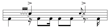 クローズリムショットを使うビートに、ゴーストノートとしてフィンガータップを使います。ゴーストなのでなくても構わない音ですが、リズムをより分かりやすくしたり、細かいニュアンスを表現するのに重宝します。何よりオシャレ!