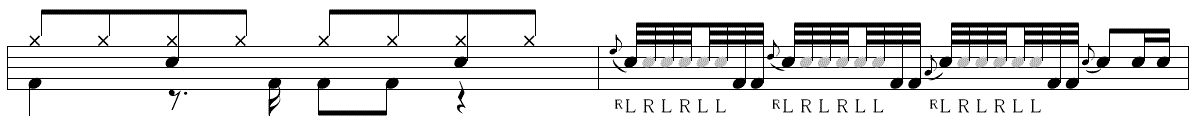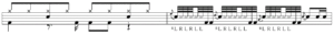 ダブルストロークやフラムなど、複数の手順を組み合わせたフレーズです。